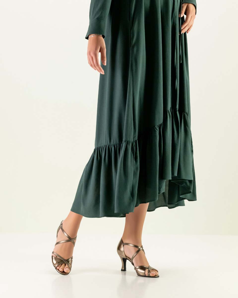 The care of patent dance shoes is similar to that of normal street shoes. First, coarse dirt should be carefully removed with a cloth or brush. After wearing them six to ten times, some patent-lacquer polish or patent-lacquer care product should be applied. This should be spread thinly on the shoe with a soft sponge and allowed to soak in for about 30 minutes. Subsequently wipe off with a cloth. - Brocade